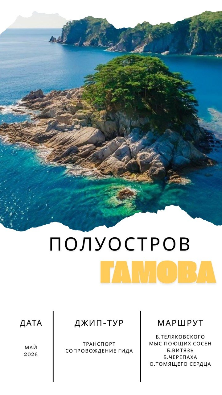 Приглашаем вас в ИНДИВИДУАЛЬНЫЙ комфортный джип-тур в один из самых красивых и разнообразных маршрутов Приморья — полуостров Гамова. Инд.группа до 4 чел.