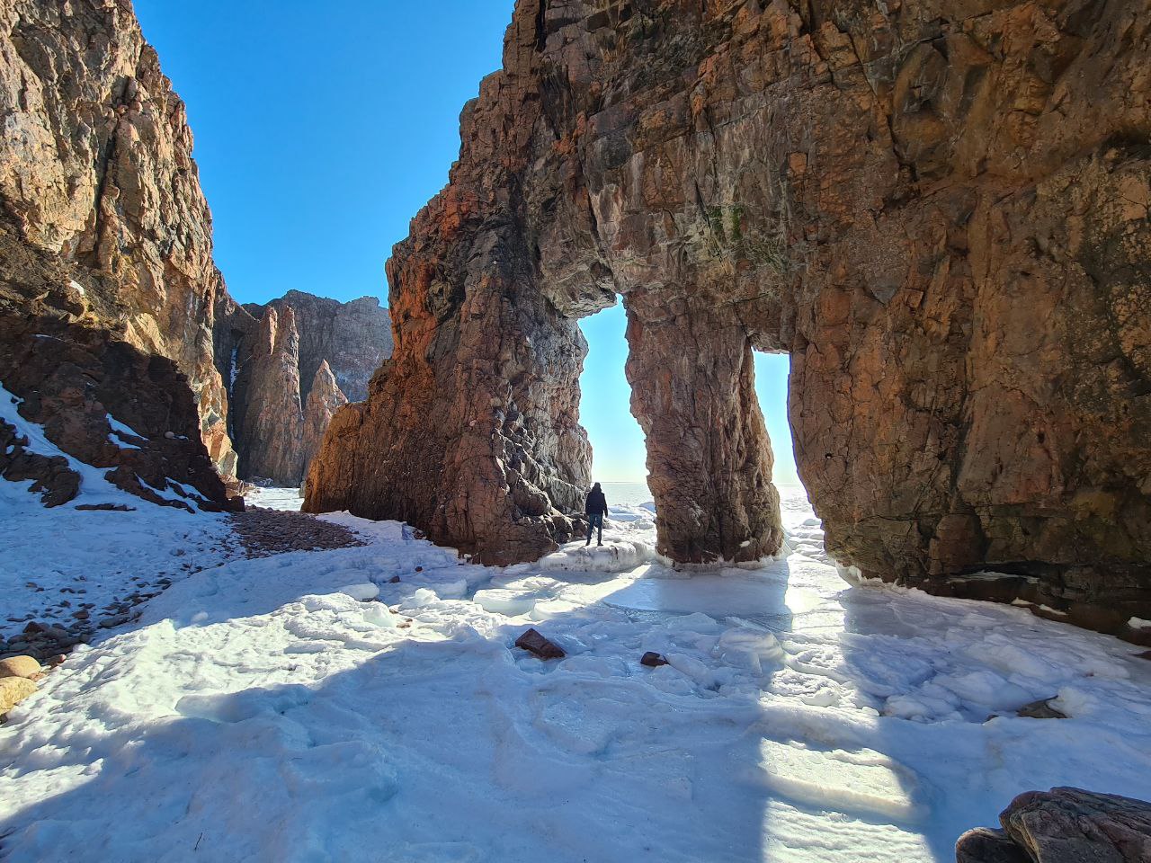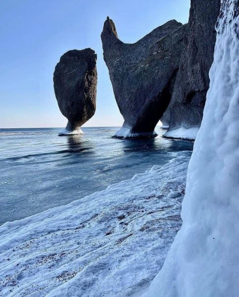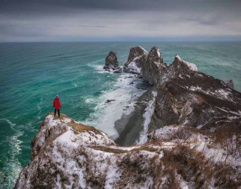 Мыс Четырех скал — огромные покрытые снегом утёсы, холодные воды Японского моря и бодрящий зимний ветер наполнят ваше сердце свежестью и энергией.