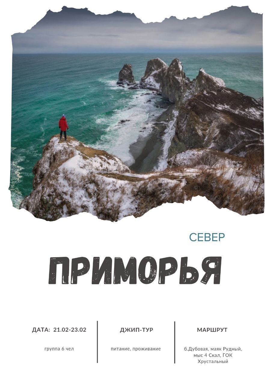 Приглашаем Вас провести три незабываемых зимних дня среди живописных заснеженных пейзажей Ольгинского и Кавалеровского районов. Камерная группа 6-10 человек.